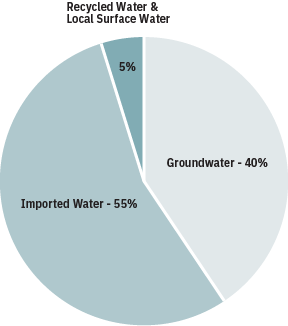The water supply of Los Angeles County is a diverse mix of groundwater, surface water, imported water, and recycled water.[9]