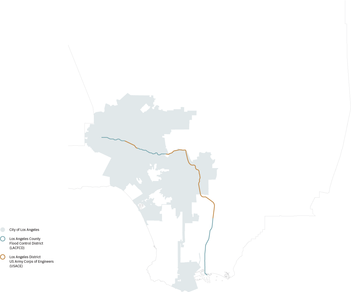 - “Jurisdictions, Ownership, and Rights,” LA River Master Plan, accessed April 15, 2025, https://larivermasterplan.org/about/master-plan-2022/jurisdictions-ownership-and-rights/